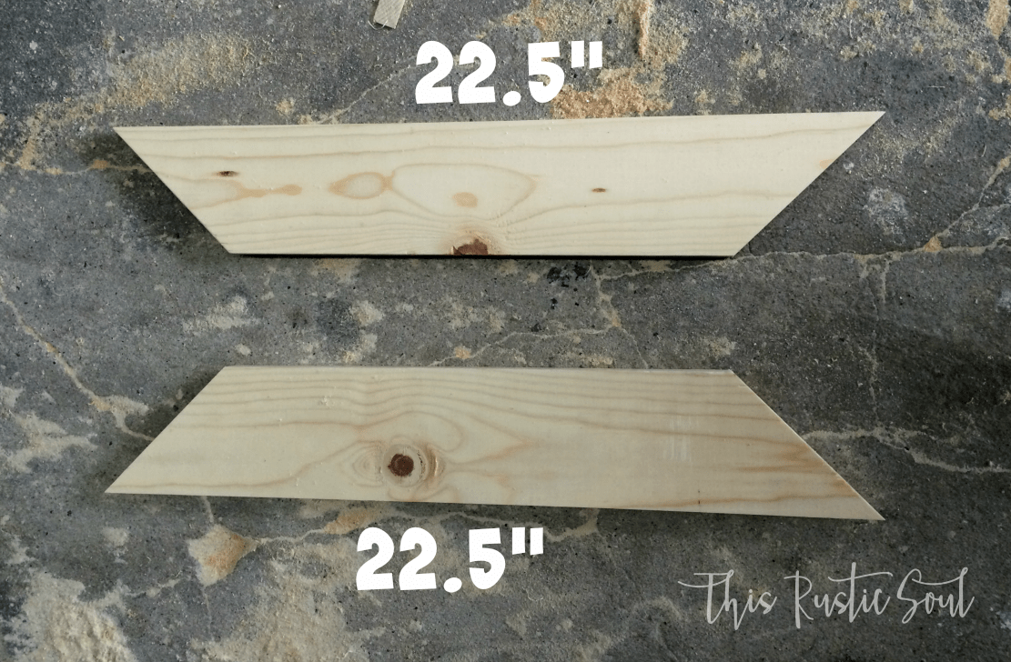 Next, you need to cut the frame for the shadow box.  Grab your 1x4x8 and again, use your miter saw to cut at 45 degree angles, two 22.5 inch sections and two 16 inch sections.