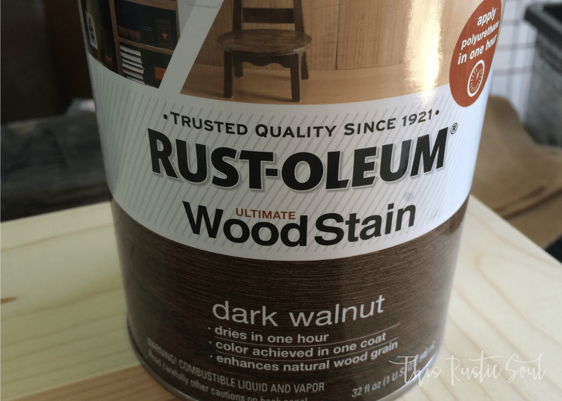 Now for the fun part!  Stain it up!  I used one of my favorite Rust-oleum stains in Dark Walnut.  Here it is: